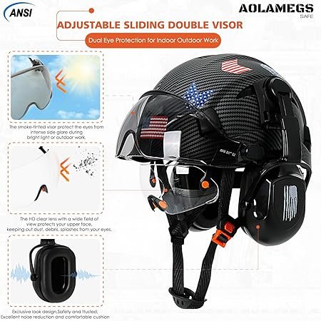 • OSHA Approved Construction Hard Hat: Crafted from high-impact and penetration-resistant ABS materials, this safety helmet ensures both lightweight comfort and robust durability. The Aolammegs Safe construction hard hats are OSHA approved Earmuffs meet standard : ANSI S3.19 NRR 25db Hearing protection Type I Class C standards, while the hard hat visor meets ANSI Z87.1-2015 standards. The ANSI standard and production date are permanently marked inside the brim of the hard hat.