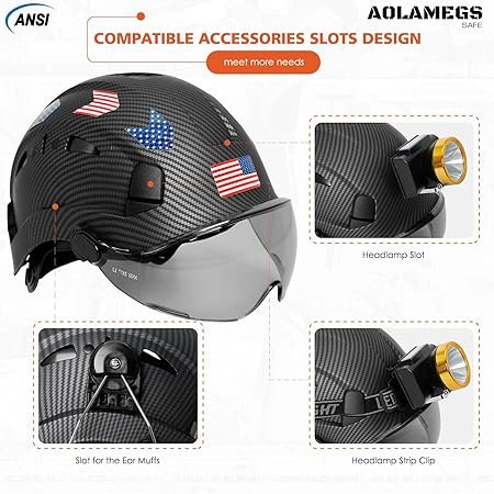 • Fashion and Safety Coexist: Our safety helmets feature vibrant and saturated carbon fiber custom patterns, enhancing visibility with high-visibility reflective stickers and flag stickers, ensuring workers are noticed even in low-light conditions. Durable and sturdy, they guarantee the safety of your head. Suitable for construction work, carpentry, machinery, forestry, manufacturing, heights and scaffolding work, as well as any other industry requiring professional head protection