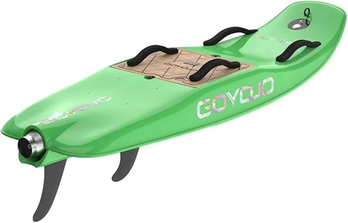 GOYOJO Adult Electric Surfboard 10kW Motor, 40 MPH, GPS and Battery Monitored Boat with Lithium Battery Stable and Steerable (Green-90min)Introducing the GOYOJO Water Electric Surfboard for Adults, a revolutionary watercraft designed to elevate your surfing experience to new heights. Equipped with a powerful 10KW motor and a high-capacity 75AH/80AH lithium battery, this surfboard delivers unparalleled speed and endurance, reaching up to 40mph for 60/90 minutes of continuous thrills on the water. Its dynamic design features three removable fins and a unique five-grab design, ensuring exceptional stability and maneuverability, allowing riders to conquer waves with ease. Crafted with convenience in mind, this electric surfboard boasts a compact size and lightweight construction, weighing just 20kg. Additionally, the separate battery package further enhances portability, making it effortless to transport and store wherever your adventures take you. Safety is paramount, with durable polymer fiber construction, a reliable water cooling system, ergonomic footstraps, security leashes, and a comfortable rubber traction pad ensuring a secure and comfortable ride for riders of all sizes. But the functionality doesn’t end there. Our electric surfboard is equipped with advanced features such as built-in GPS and battery remote monitoring, offering worldwide coverage and control. Whether for personal use or club rentals, users can set regional usage limits, enhancing safety and peace of mind. Plus, with a maximum weight capacity of 260 lbs and a forced water cooling system to maintain safe operating temperatures, riders can enjoy a worry-free experience, making it perfect for riders of all skill levels. In summary, the GOYOJO Water Electric Surfboard for Adults is not just a watercraft; it’s a gateway to adventure, excitement, and unparalleled fun on the water. Whether you’re a seasoned surfer looking to take your skills to the next level or a beginner eager to experience the thrill of riding waves, this electric surfboard promises an unforgettable aquatic adventure like never before.GOYOJO Adult Electric Surfboard 10kW Motor, 40 MPH, GPS and Battery Monitored Boat with Lithium Battery Stable and Steerable (Green-90min)